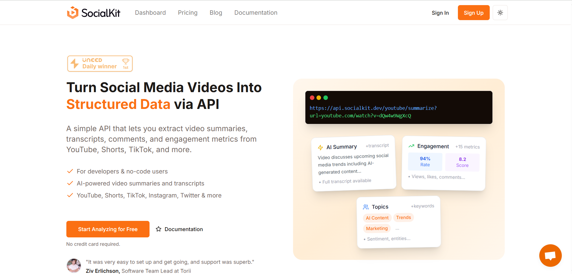 API for extracting video summaries from social media